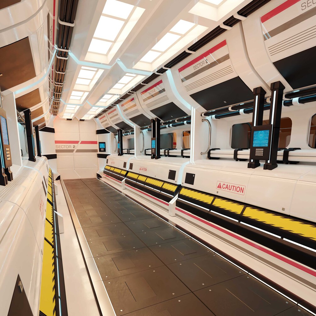 Science Fiction Corridor All objects are grouped, Easy Modular structure, it is very easy to change the length of the tunnel by changing array values and the lighting colors can be changed easily